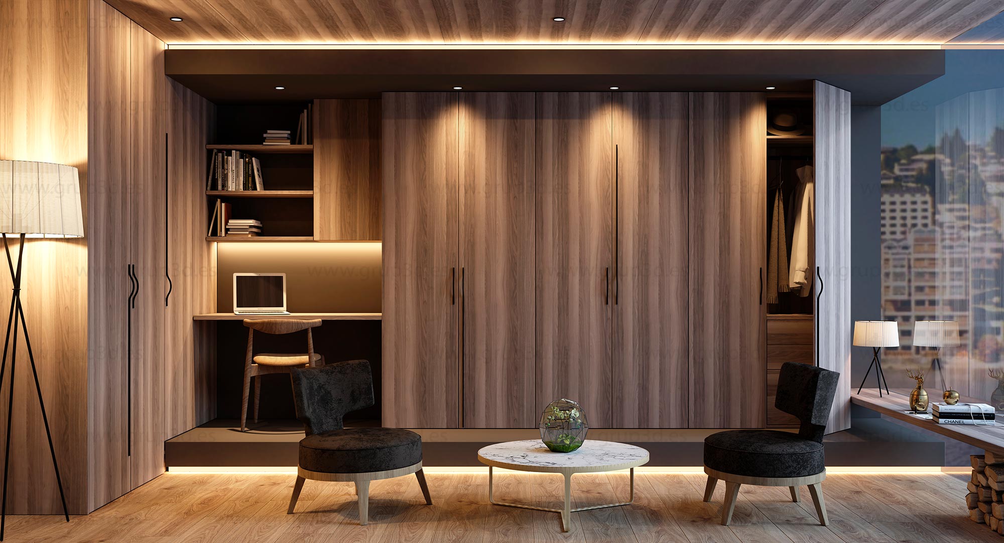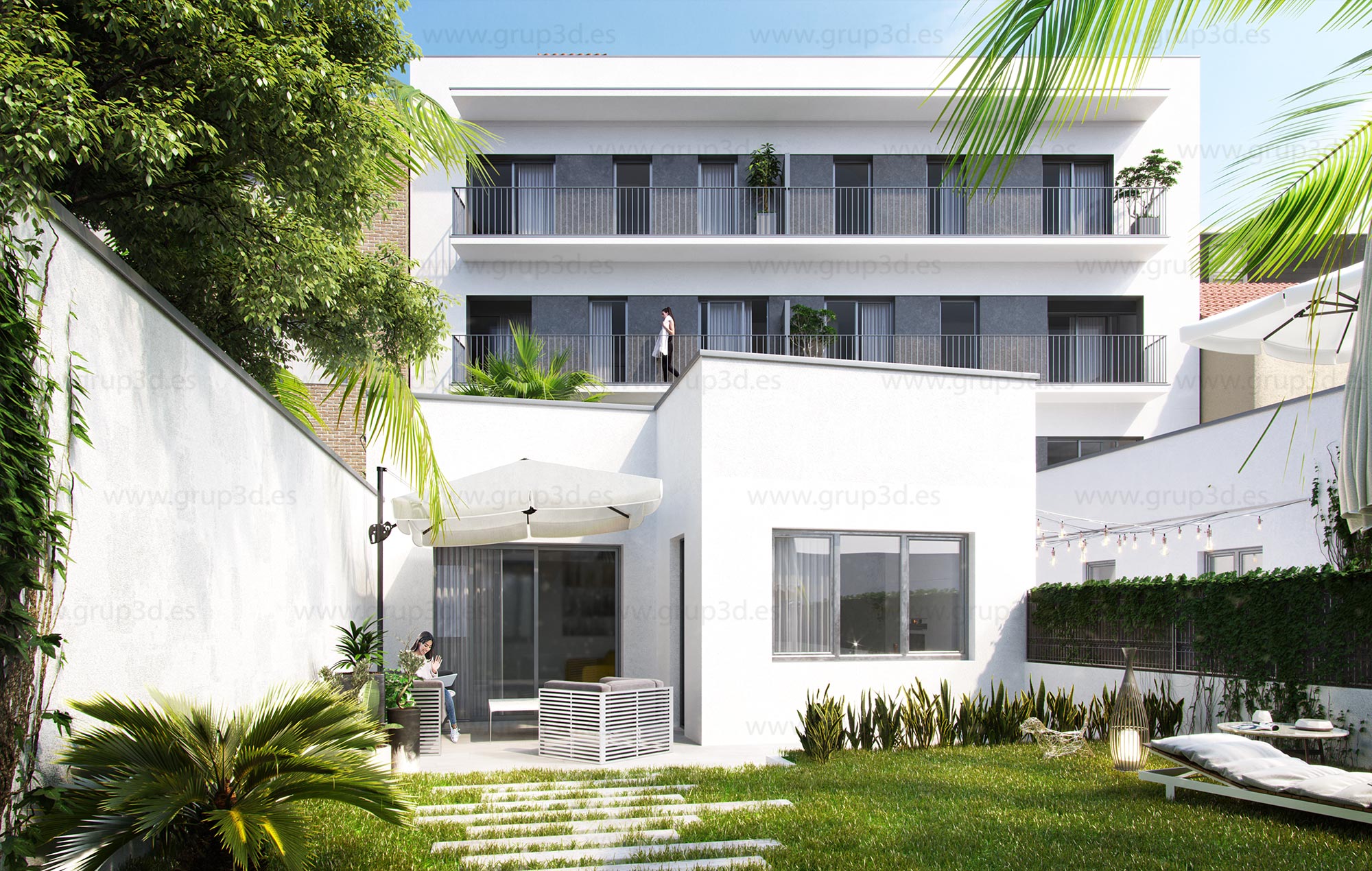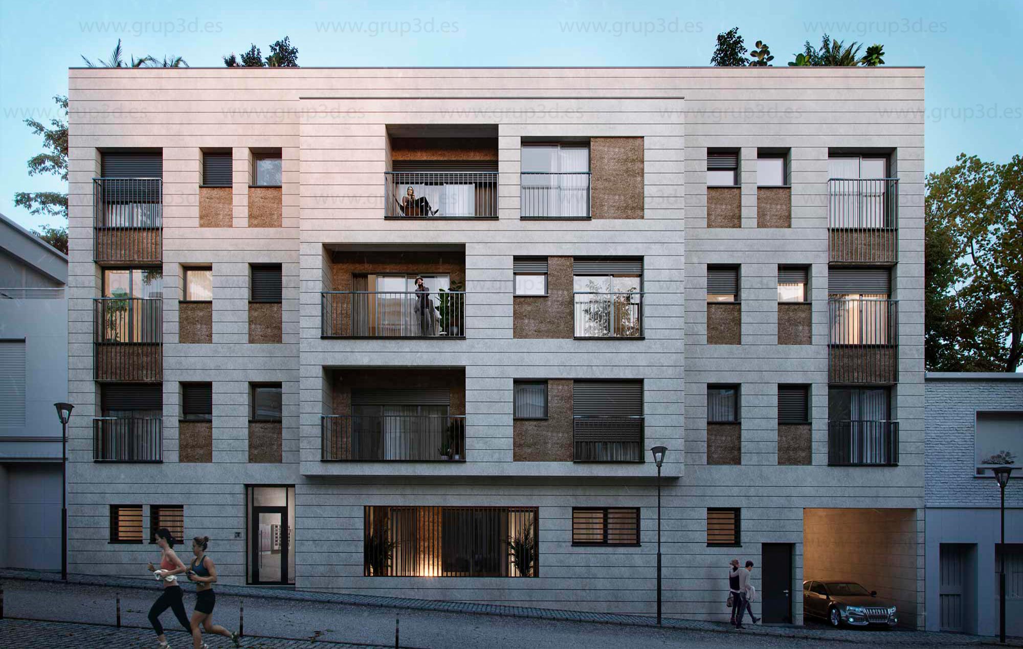 Renders de arquitectura exteriores e interiores, diurnos y nocturnos, vistas aéreas, integraciones, planos 3D, alzados. Todo el contenido digital necesario para la venta de proyectos arquitectónicos de viviendas.